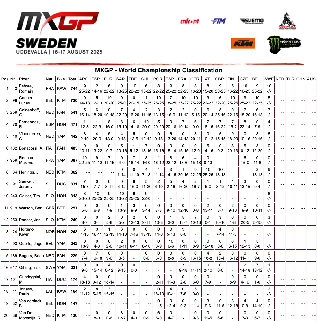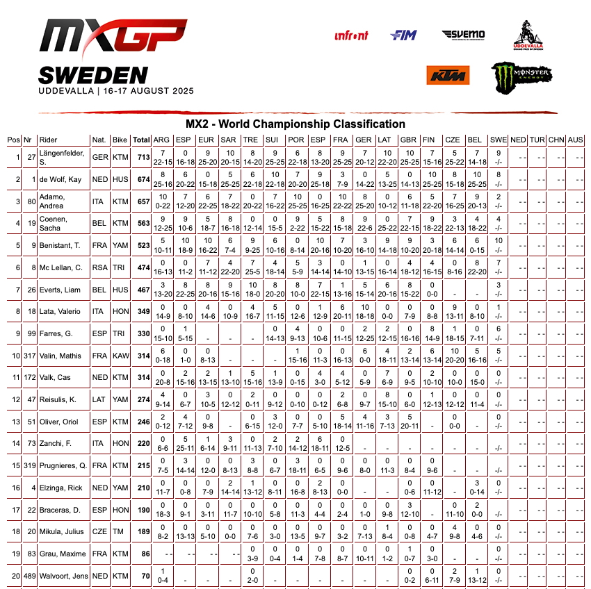 MXGP – World Championship Classification-Gp di Svezia