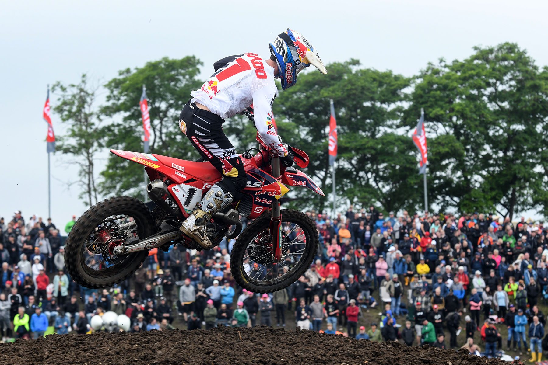 In gara uno dopo il via Prado ha lottato con l’olandese Glenn Coldenhoff (Fantic), ma dopo averlo superato nel corso del primo giro ha preso il largo e ha tenuto saldamente il primo posto fino alla bandiera a scacchi, per tutti i 18 giri della gara. In gara due la pista è un po’ asciugata ma non è cambiato il protagonista: Jorge dopo aver segnato il suo nono Holeshot stagionale, ha gestito da campione la gara, resistendo ai tentativi di insidiarlo prima di Jeffrey Herlings (KTM), poi di Tim Gajser (Honda) e ha tagliato il traguardo con buon margine sugli inseguitori.