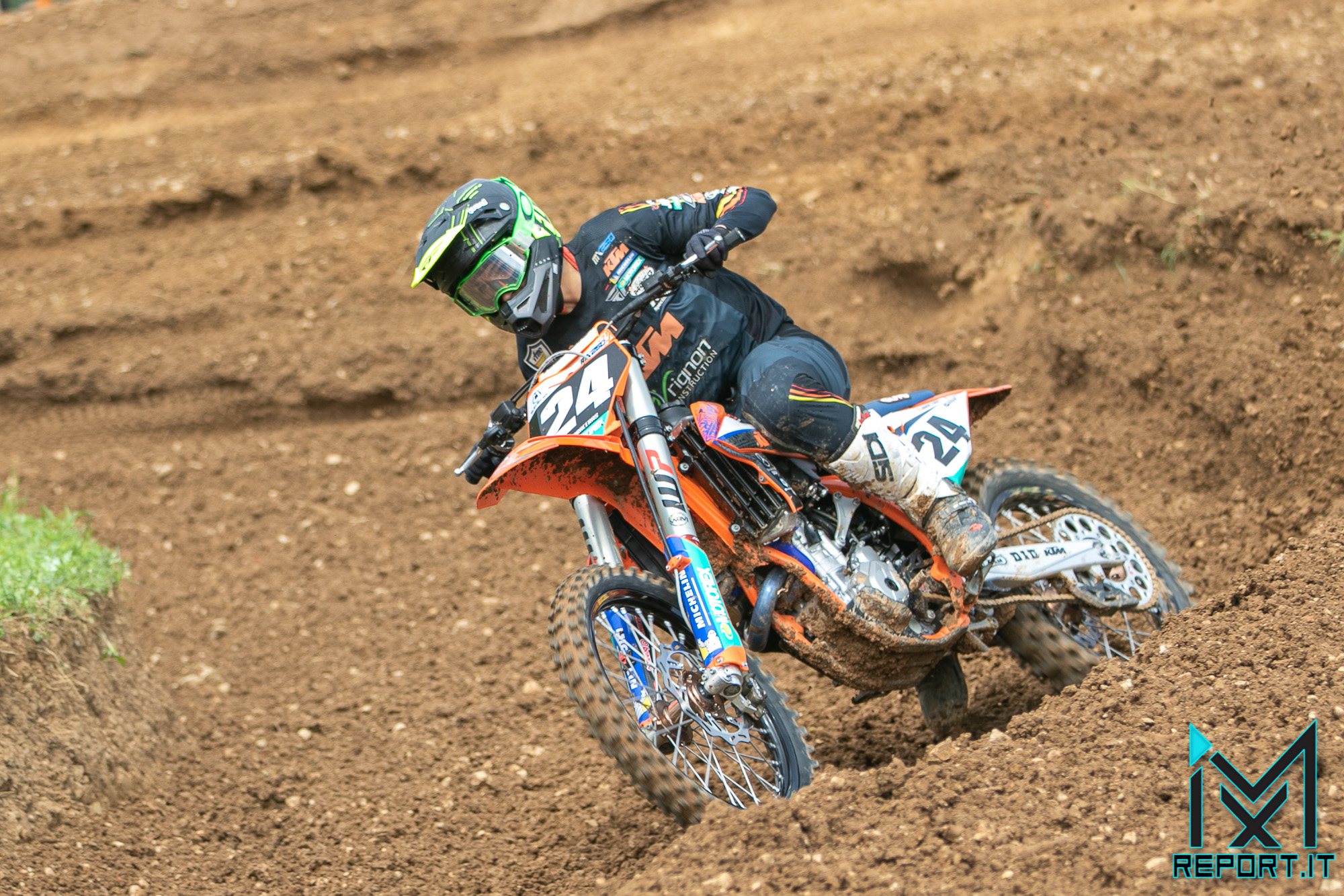 Col fango che inizia ad asciugarsi, complice il sole che spunta dalle colline del Balmone, i due piloti del Fantic Factory Maddii Racing fanno subito il vuoto dalla partenza. Stavolta è il numero 312 Osterhagen a scattare davanti a tutti ed ad imporre il suo ritmo. Il giovane norvegese trova il giusto “flow” nelle insidie di Maggiora e con una guida plastica mette a distanza di sicurezza il compagno di squadra Tondel.
