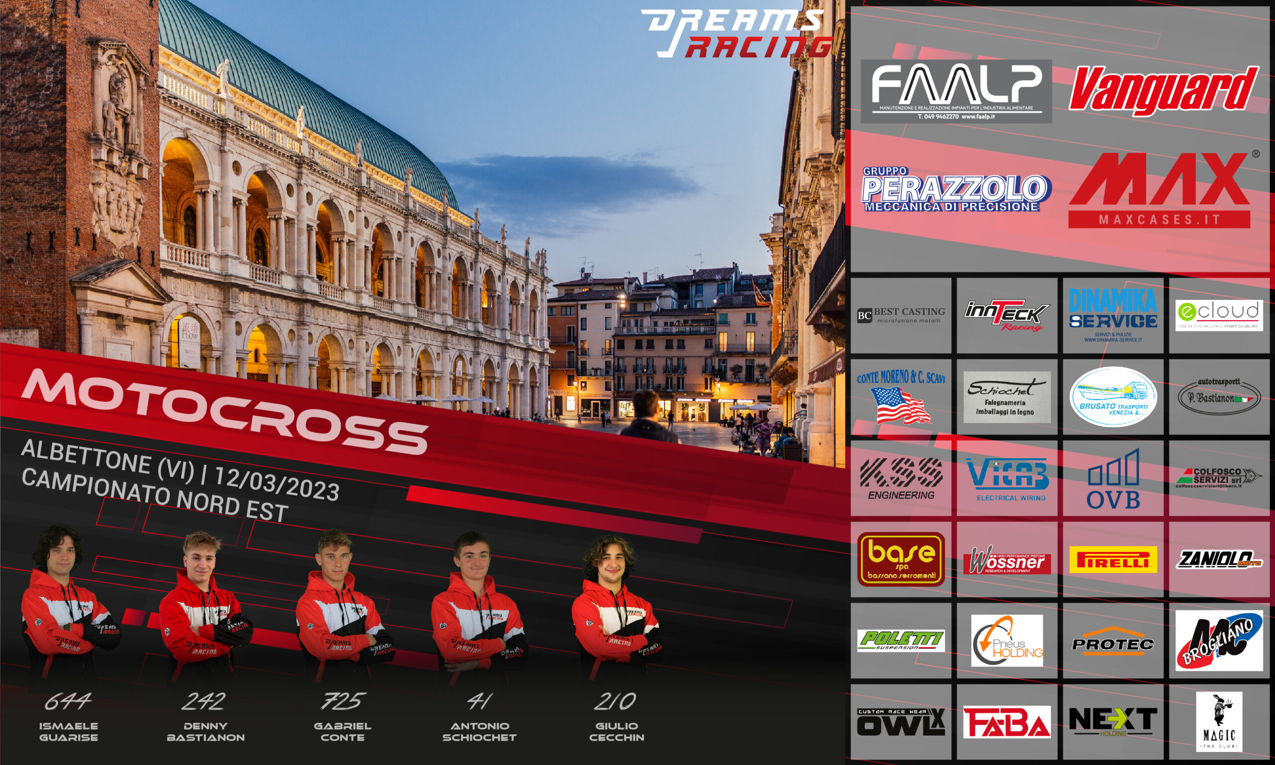 <Dopo un lungo inverno è arrivato il momento che tanto aspettavo, si torna dietro il cancelletto! Dopo un 2022 che non mi ha soddisfatto, l’obbiettivo di quest’anno è di riscattarmi e migliorarmi. La preparazione invernale è andata molto bene, gli allenamenti tra pista, palestra, piscina e bicicletta hanno dato i loro i frutti e nemmeno un piccolo stop per infortunio di 10gg ha intaccato il mio entusiasmo. Sono felice di essere entrato nel team Dreams Racing, mi trovo molto bene e altrettanto bene anche con la nuova cilindrata. Ringrazio famiglia, sponsor e team per il supporto, a domenica!>