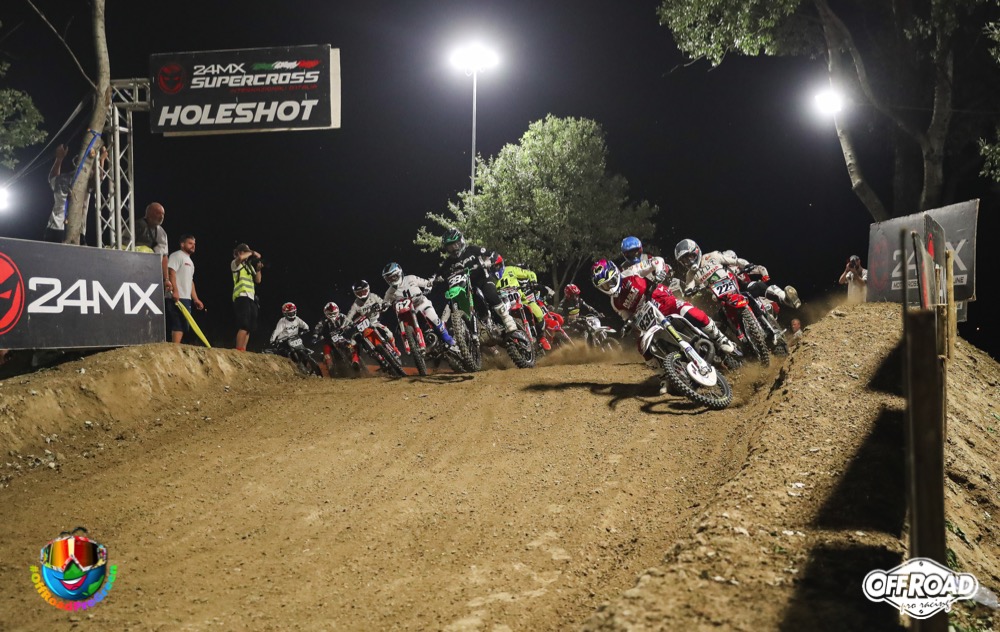 Super Finale – dopo la grande Hole Shot 24MX di Paolo Ermini (Husqvarna) con la piccola 250, già dalle prime tornate Lorenzo Camporese (Kawasaki – Gaerne) ha rotto gli indugi passando a condurre con una azione determinata, che gli ha consentito di guadagnare subito alcuni metri sul numeroso e agguerrito nugolo di diretti inseguitori.