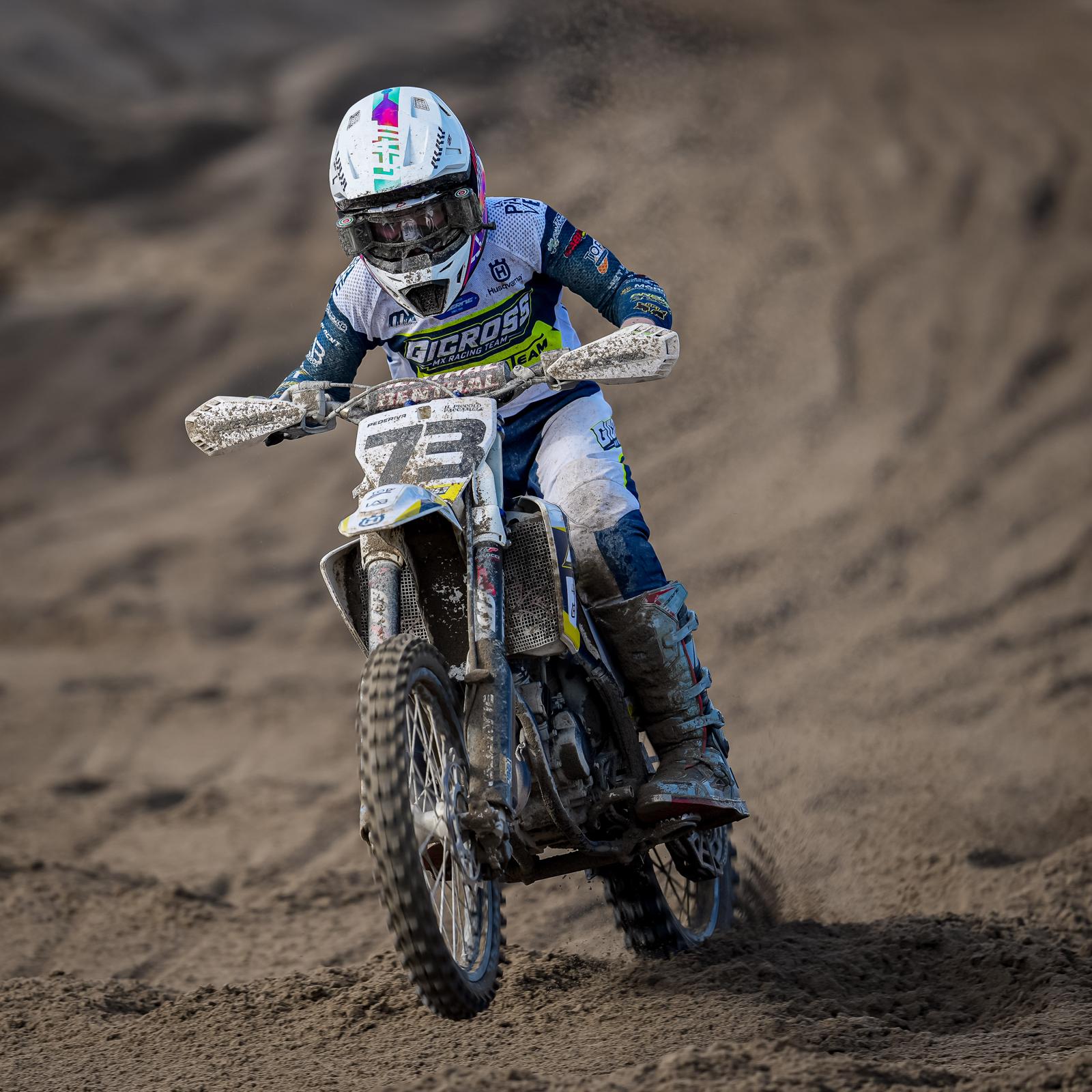 Belle prestazioni anche per Alfio Pulvirenti che è stato il migliore della PRO MX2 in entrambe le manche del sabato mentre un errore in gara due della domenica gli ha fatto perdere alcune posizioni per poi essere davanti a tutti nell’ultima frazione. Alfio così conquista la tabella rossa della PRO MX2 e dovrà anche lui difenderla da Maccarese in poi. Gara sorprendente per Simone D’Agata che ha dato il suo bel da fare a tutti i migliori piloti della PRO sfiorando il podio in entrambe le giornate. Nella manche conclusiva ha ingaggiato una bella battaglia con piloti come Rossi ed Alvisi dimostrando la sua preparazione su questo terreno sabbioso. Dopo queste due prime prove Simone occupa la 4° posizione nella classifica generale della PRO MX2.
