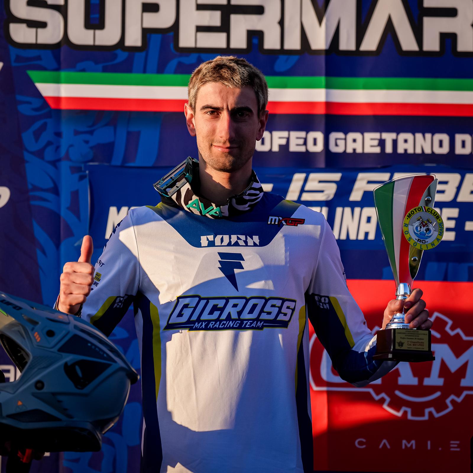 DIEGO PEDERIVA (responsabile tecnico GICROSS): “Sicuramente un inizio di Supermarecross che è andato oltre le nostre più rosee aspettative. Andiamo verso Maccarese con due tabelle rosse, due secondi in classifica ed un quarto. Pensavamo di poter far bene sia con Matteo che è uno specialista di questi terreni ed anche con Alfio. Entrambi hanno mostrato tutto il loro potenziale e le altrettante tabelle rosse lo dimostrano. Le sorprese sono venute da Ivan che ha addirittura vinto la giornata del sabato e da Tommaso che è anche lui secondo nella sua categoria. Non pensavamo che potessero competere a questi livelli sin da subito. Belle anche le prove di Andrea e Simone che sono ad un passo dalla zona podio e siamo certi che si giocheranno le loro carte nelle prossime tappe. Per Giuseppe è stata una bella esperienza che ha affrontato con una grinta incredibile. Adesso ci prepariamo per le gare di Maccarese con tanto entusiasmo ma dovremo tenere i piedi per terra per continuare a tenere vive le speranze di grandi risultati. Un grazie a tutti i ragazzi del team ed a tutti gli sponsor che ci aiutano in questa stagione. Ci vediamo a Maccarese!”.