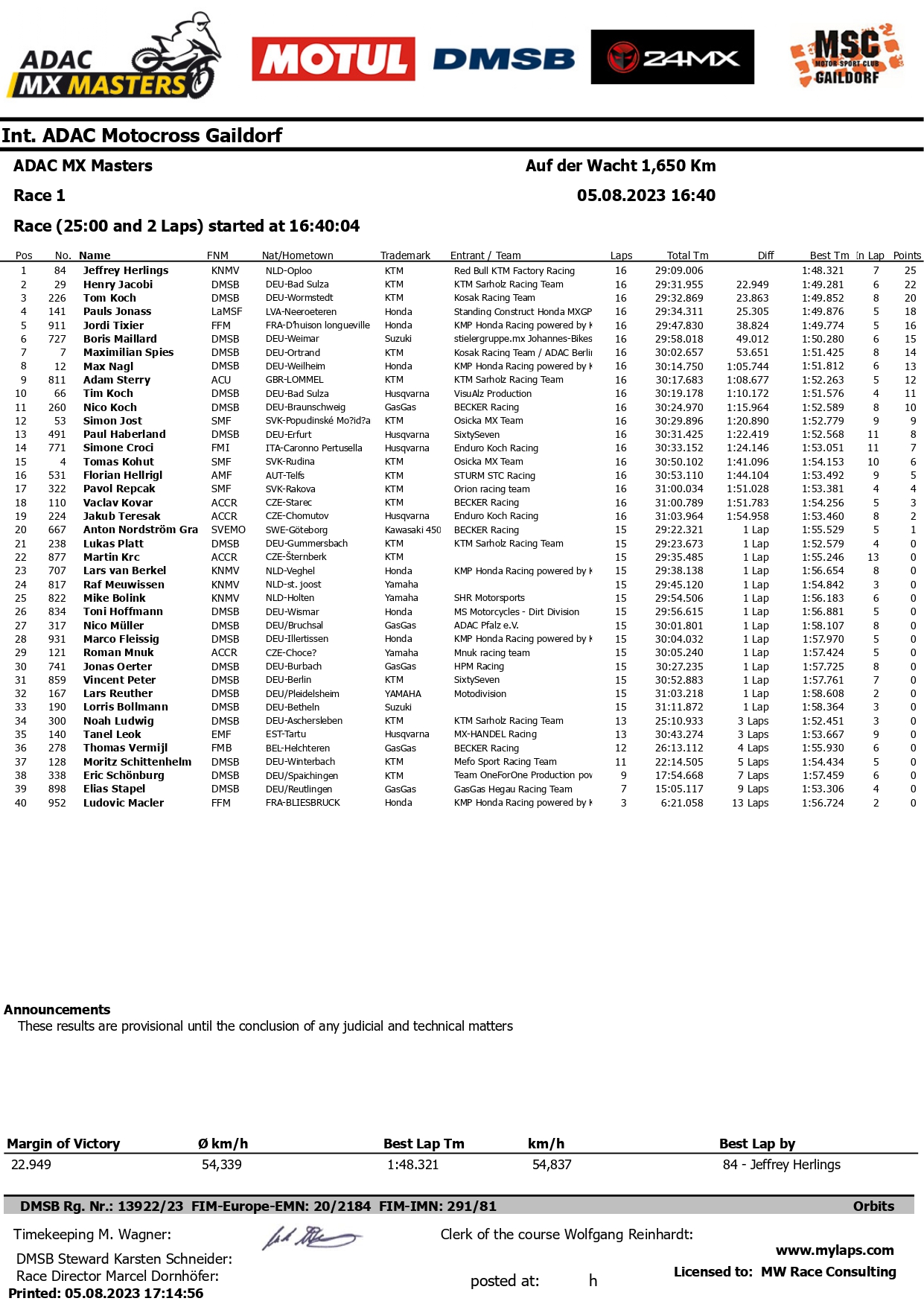 Lo scorso weekend la storica pista di Gaildorf in Germania ha ospitato la quinta prova dell’Adac Mx Masters 2023. In pista alcuni top rider del Mondiale MXGP compreso l’olandese Herlings.