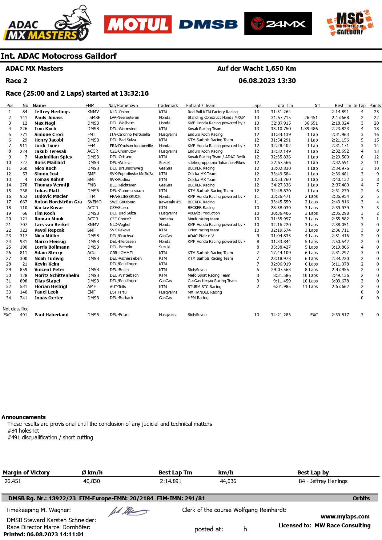 RISULTATI CLASSE MX MASTERS