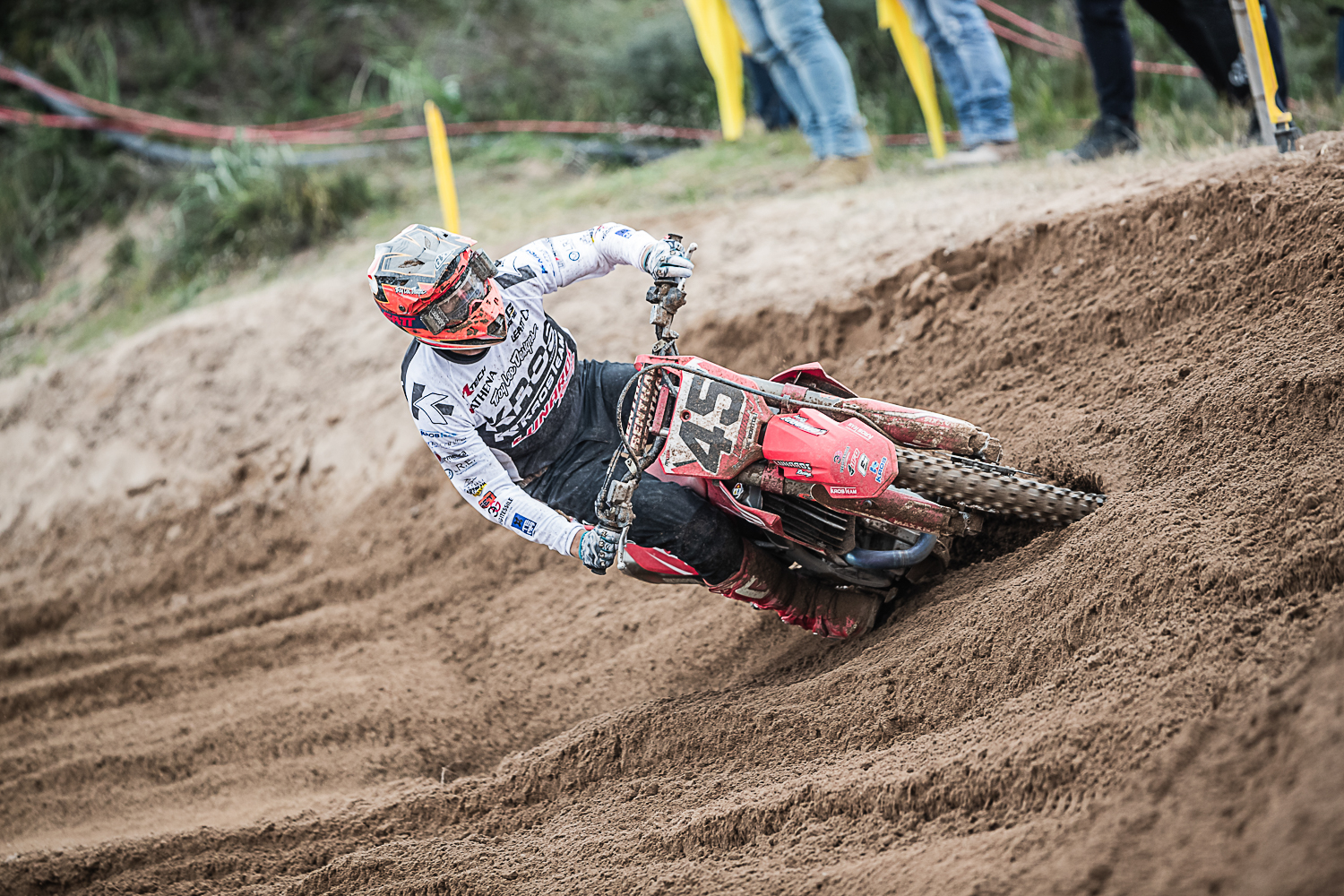 Al via della manche MX1 Davide, in sella alla sua Honda CRF450, è scattato benissimo chiudendo la prima curva al terzo posto. Nel corso del primo giro è però scivolato ed è stato letteralmente investito da un altro pilota che oltre a procurargli alcune contusioni gli ha anche danneggiato la moto in maniera irreparabile. A quel punto non è rimasta alternativa se non quella di prendere la via dei box.