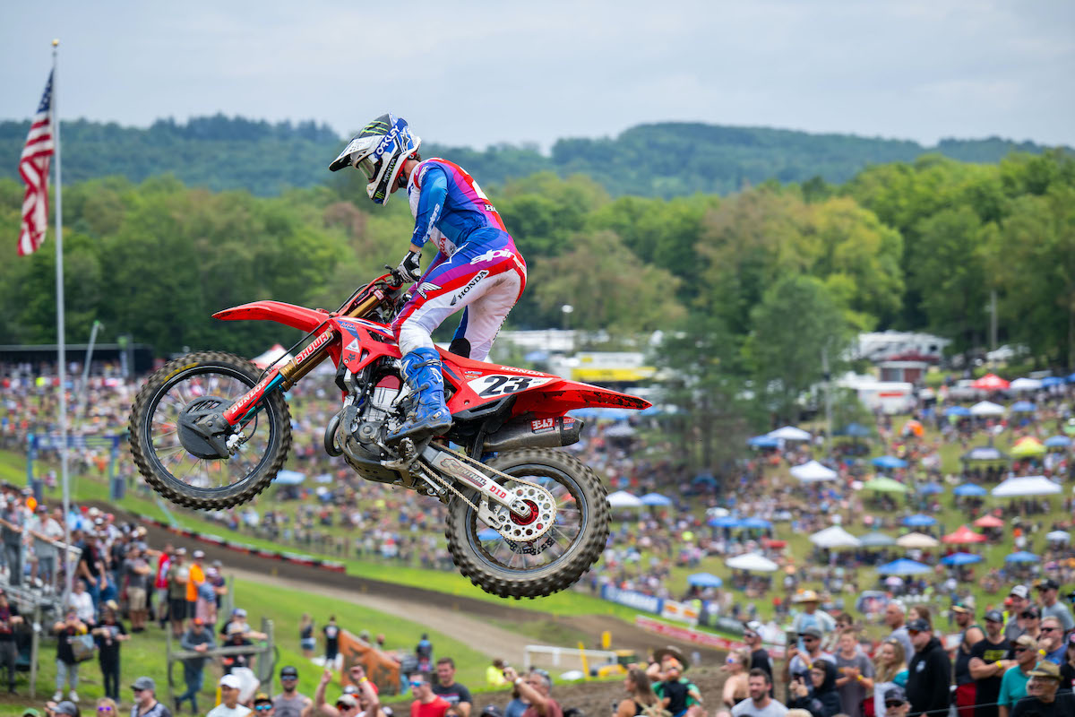 NEW BERLIN, N.Y. (12 agosto 2023) – La corsa di tre round del Pro Motocross Championship 2023, sanzionata da AMA Pro Racing, è iniziata sabato dai sacri terreni dell’iconico Unadilla MX di Central New York. Un’atmosfera da campionato era nell’aria all’Honda Unadilla National quando l’astro nascente australiano Jett Lawrence è entrato con la possibilità di concludere il titolo della classe 450 nella sua prima estate di competizione nella classe regina. Quando tutto è stato detto e fatto, Lawrence ha esteso la sua stagione perfetta per la sua nona prestazione consecutiva per 1-1 per aggiudicarsi la Edison Dye Cup con due turni rimanenti. Nella classe 250, l’anziano Lawrence, Hunter, ha fatto il sesto posto per la famiglia e il Team Honda HRC, che ha esteso il suo vantaggio in campionato e lo ha avvicinato di un passo al titolo inaugurale.