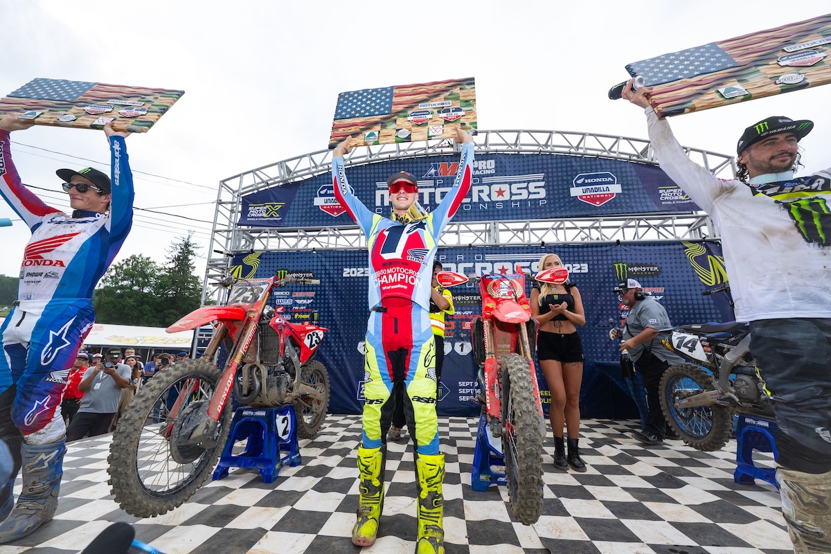 Con due turni di anticipo, e prosegue la sua Perfect Season a Unadilla. Il compagno di squadra e fratello Hunter Lawrence emerge con una vittoria di classe 250 per coronare un pomeriggio memorabile per la famiglia e il team.