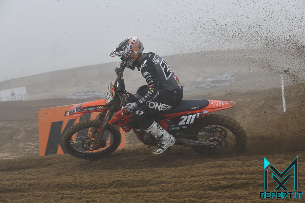 La manche della MX2 è stata per lui subito in salita, il suo spunto dal cancello non è stato dei migliori e Nicholas si è ritrovato dopo poche curve attorno alla trentesima piazza. Il nostro ragazzo ha stentato a risalire la classifica ma a metà gara era a ridosso dei 20 e sembrava in grado di entrare nella Supercampione. Ma a quattro giri dal termine un piccolo inconveniente tecnico l’ha rallentato e la sua manche si è chiusa al 35° posto. Purtroppo la sua giornata è terminata li e l’appuntamento per rivederlo in gara è rimandato al prossimo week end a Mantova per l’ultima prova degli Internazionali.