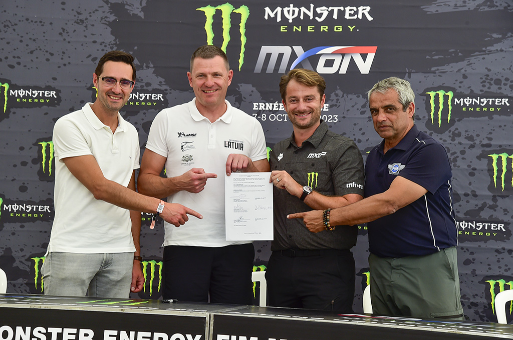 La firma ufficiale di questo contratto pluriennale è avvenuta nell’emozionante atmosfera dell’evento Monster Energy FIM Motocross of Nations. Il CEO di Infront Moto Racing David Luongo era presente per questa occasione, insieme al direttore della FIM/CMS Antonio Alia Portela, al presidente della Federazione motociclistica lettone Martins Lazdovskis e all’organizzatore della MXGP della Lettonia Kristers Sergis. Insieme, hanno annunciato con orgoglio la continuazione della loro collaborazione.