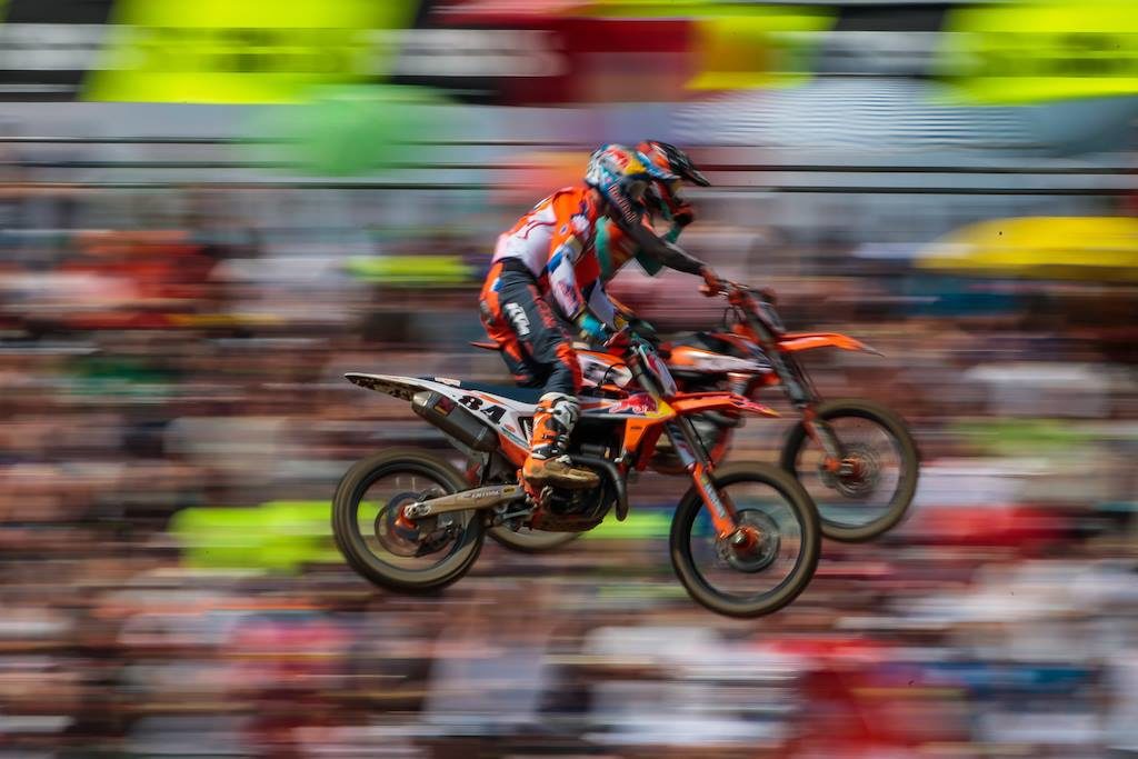 Nella MX2 bella lotta al vertice tra la tabella rossa Prado e l’americano Covington che ha avuto la meglio negli ultimi passaggi andando a vincere. Terza piazza per Pauls Jonass a poca distanza dai primi due. Assente Cervellin, il migliore dei nostri è stato Bernardini 14°, Lesiardo ha chiuso 17° mentre Furlotti si è ritirato anzitempo.