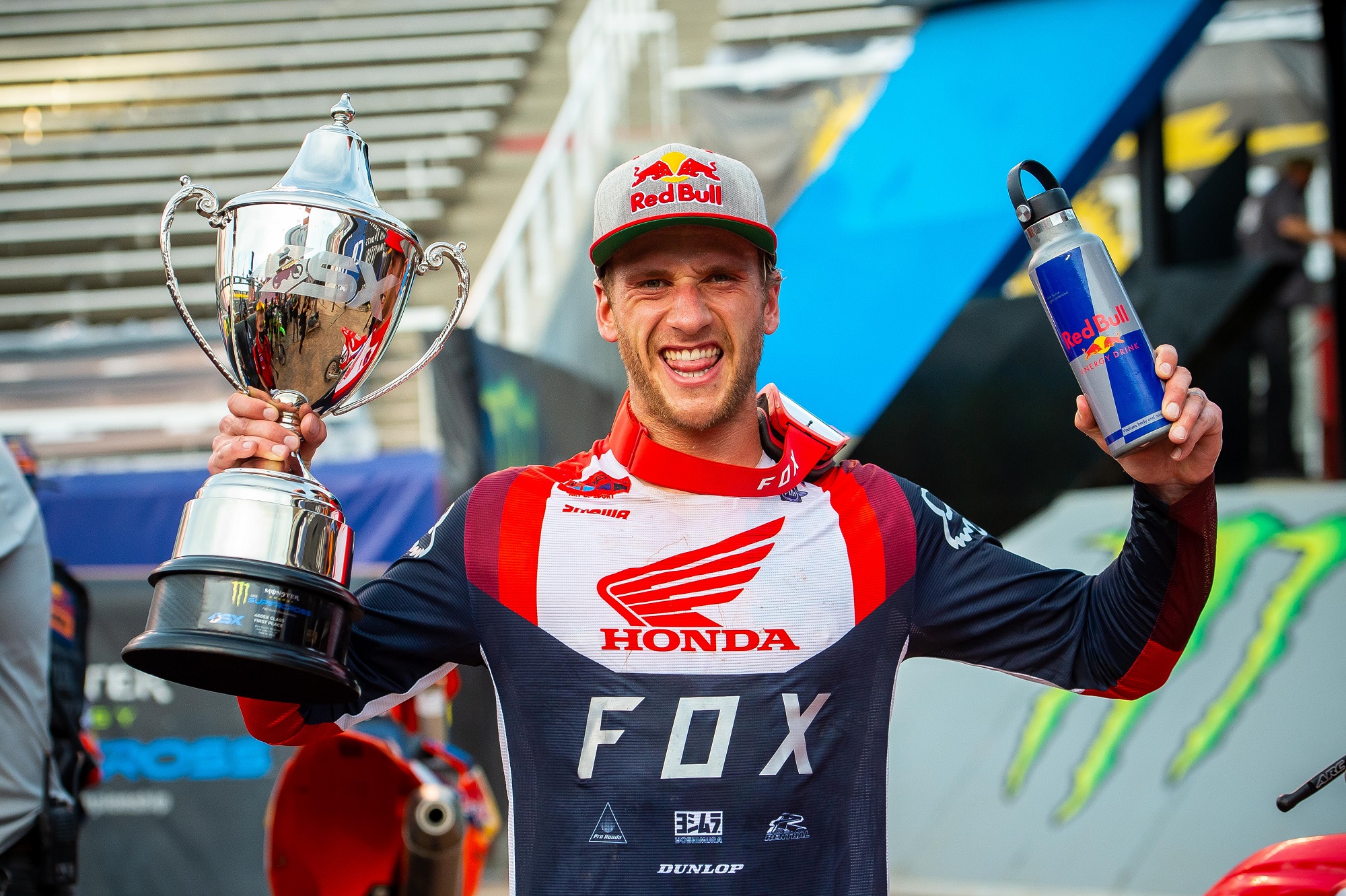 Sul podio, anche con il tranquillo stadio che rende possibile questa corsa di fine stagione, Roczen ha mostrato l’emozione della vittoria che lo riporta in seconda posizione nella classifica dei punti del campionato, “È grande, grande inversione di tendenza; ovviamente dopo le ultime gare non è facile da fare, ma mi sono divertito qui. Abbiamo messo insieme al meglio la moto e le mie condizioni fisiche erano molto meglio oggi. Quindi, ho vinto la heat e ho vinto il main event, è stata una battaglia fantastica. ottimo con la pista qui fuori oggi e con la moto, quindi sono così felice di ciò che Factory Honda Racing ha fatto con me quest’anno, abbiamo sistemato la moto super bene. E voglio ringraziare tutti i miei sponsor che sono venuti con me“.