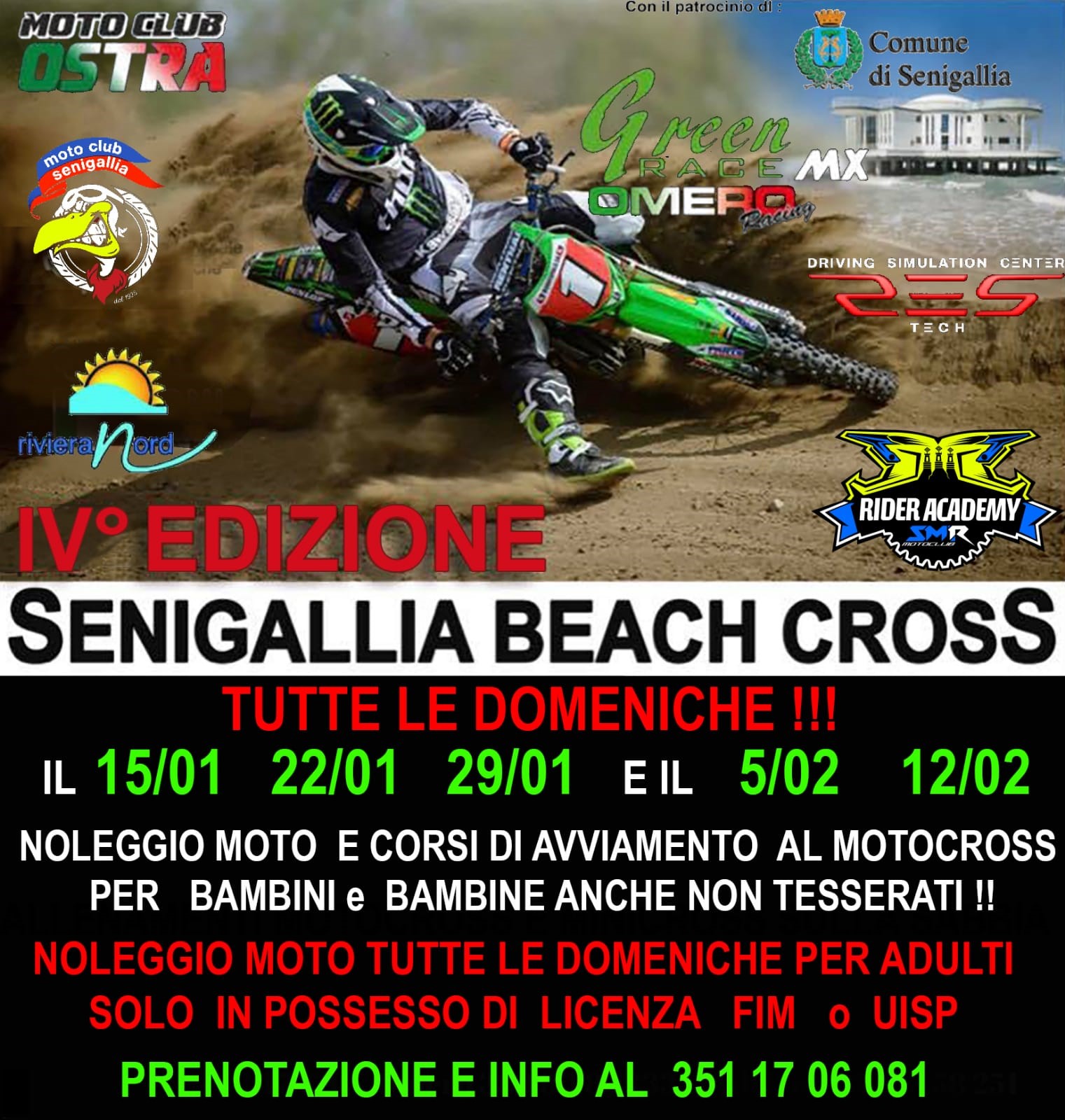 Il Moto Club Ostra, il Green race MX, Omero Racing con la collaborazione del Moto Club Senigallia e con il patrocinio dell’omonimo comune, portano per la quarta volta il motocross in Riviera.