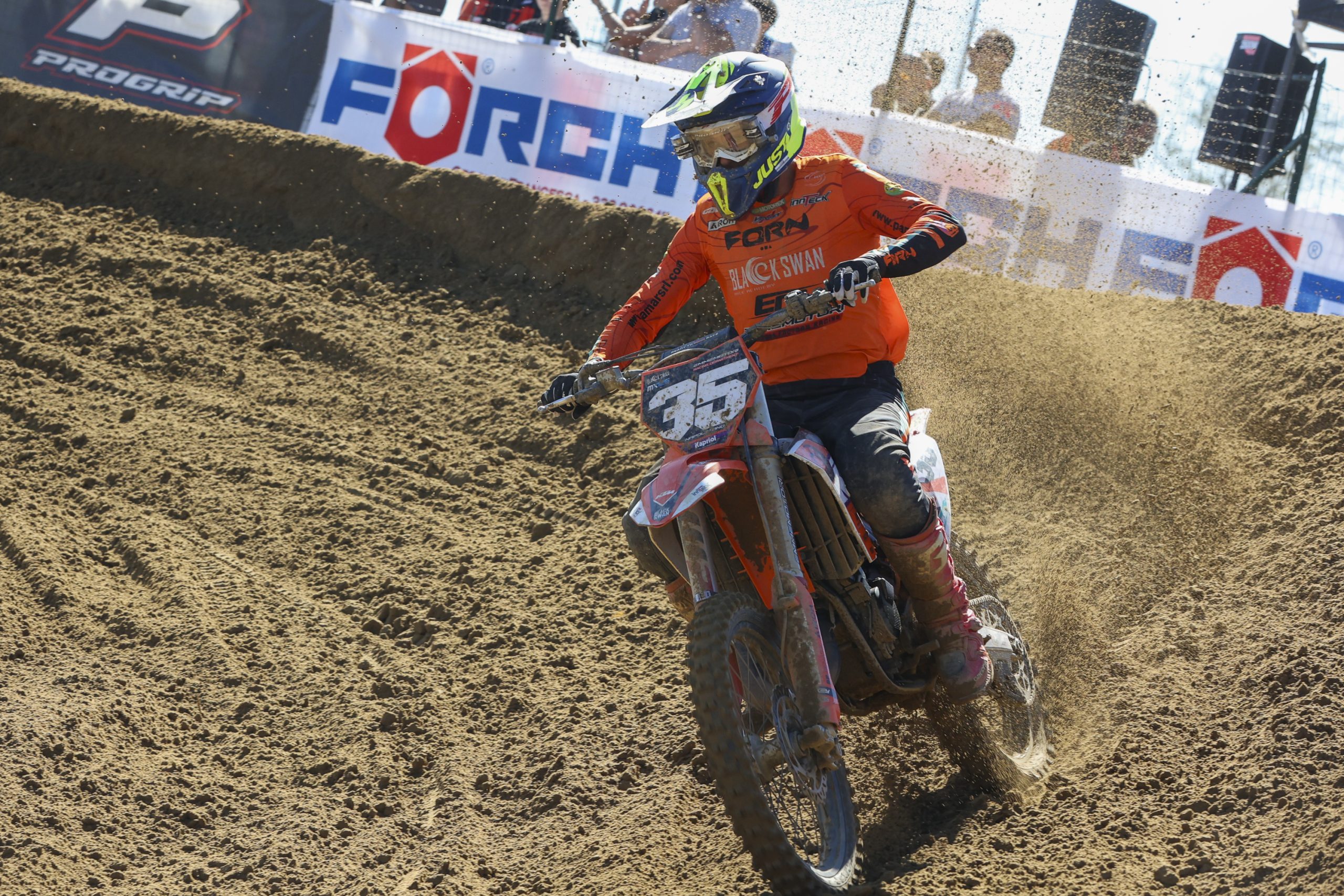 Federico finished 25th and Luca 36th in the Saturday morning Free Practice session. In the following Timed Practice both riders qualified with the 30th and the 36th fastest lap times. At the end of the first lap of EMX250 Race 1 Luca and Federico were in the very back of the group. Both riders were out of the “top 20”, in P23 and P29 respectively, but while Federico made a fast recovery and moved up numerous places, Luca went back. At the checkered flag Federico was in 23rd position as he could not enter the “points area”; Luca was already at the box as he retired after a crash.