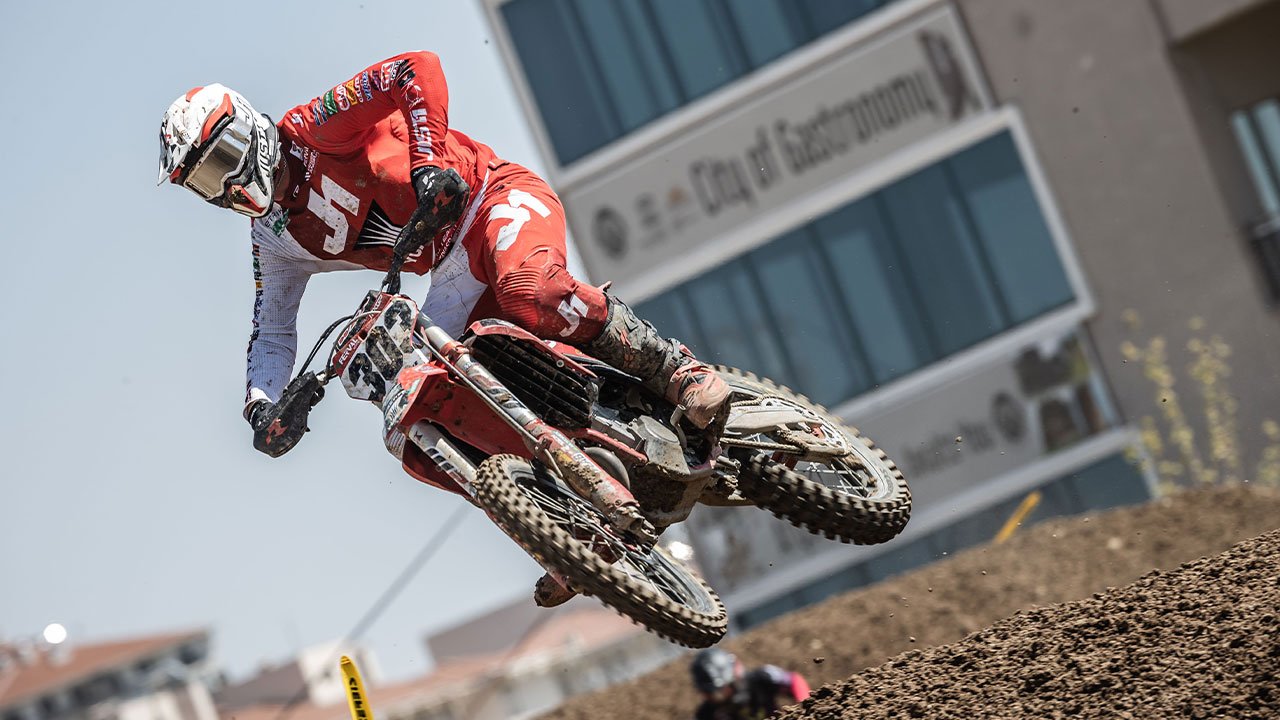 Nella MX2, la prestazione di Andrea ritorna ad essere in linea con il suo rendimento stagionale. Partito a ridosso della ‘top 10’, il siciliano da vita ad una solida prova e stando lontano dagli errori, centra un buon 12° posto, dimostrando consistenza e costanza di rendimento. Nella seconda ed ultima manche della giornata, il giovane siciliano parte nuovamente bene e si posiziona 12°. Questa volta la sua azione è più incisiva e grazie a due importanti sorpassi, Andrea chiude la manche con un convincente 10° posto. Dal computo delle due manche, Adamo sfiora nuovamente la ‘top 10’ di giornata per un solo punto e si classifica 11° dimostrando di poter puntare sempre più in alto. In classifica generale, Adamo resta stabile in 15a posizione.
