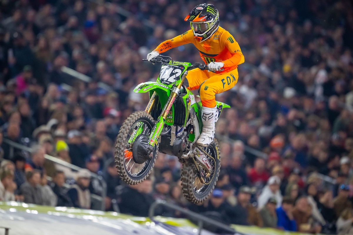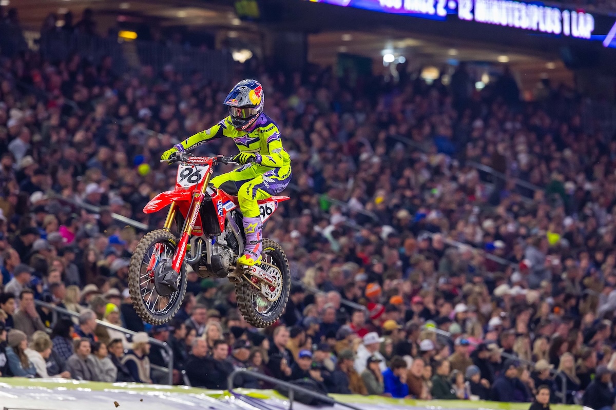 Houston’s NRG Stadium hosted the fifth race of the 2026 season and the first Triple Crown of the Monster Energy AMA Supercoss Championship. 450SMX Class Results – Houston Western Divisional 250SMX Class Results – Houston Race 1 was dominated by Progressive Insurance Cycle Gear Suzuki’s Ken Roczen, as the German grabbed the holeshot and rode to an uneventful wire-to-wire win where he never faced a serious challenge for the lead. Roczen took the first checkered flag of the night by 1.9 seconds over Monster Energy Kawasaki’s Chase Sexton, with Red Bull KTM Factory Racing’s Eli Tomac in third. Webb began the night with a fourth-place result, while Red Bull KTM Factory Racing’s Jorge Prado rounded out the top five. Honda HRC Progressive’s Hunter Lawrence saw a podium finish slip away when a late miscue and tip over relegated him to seventh. The second race of the evening got underway with Prado out front for the holeshot, followed closely by Lawrence and Twisted Tea Suzuki Presented by Progressive Insurance’s Jason Anderson. Webb started fourth, with Roczen a few positions back in eighth. Both Tomac and Sexton were mired outside the top 10, with Tomac 11th and Sexton 17th. Prado impressed out front and led more than half of the race before Lawrence made the move in the closing stages and carried on to take the win. Webb battled his way into the top three and slipped by Prado as well to finish second, 2.1 seconds behind Lawrence. Prado held on for third, followed by Monster Energy Yamaha Star Racing’s Justin Cooper in fourth and Roczen in fifth. Sexton did well to claw his way up to ninth, while the biggest moment of the race came when Tomac crashed while running sixth. The championship leader remounted and soldiered home to a 13th-place finish. After two races, Webb and Roczen sat tied for the lead, while Lawrence and Prado were tied for second. The third and deciding race provided a captivating end to the night and began with Tomac out front for the holeshot, followed by Anderson and Lawrence. Webb started seventh, while Roczen (11th) and Prado (14th) were forced to battle back from outside the top 10. As riders jockeyed for position early, Webb made a costly error off the finish line jump that took him off track and back to eighth, behind each of his contending foes. Out front, Anderson charged by Tomac into the lead, as Lawrence followed through into second. The KTM rider settled back in and mounted an attack, which saw him get back by Lawrence for second and reclaim the lead from Anderson. Roczen, meanwhile, had fought his way up to fourth, just behind the leaders, in position for the overall. Lawrence then got by Anderson for second, which positioned the Honda rider for the overall. Behind them, Webb had overcome his early misfortune and was on the cusp of the top five. As he looked to pass his teammate for third, Roczen mistimed a rhythm section, which allowed Sexton and Webb to drop the Suzuki rider to sixth. Sexton then moved by Anderson for third but also mistimed a rhythm, which allowed Anderson, Webb, and Roczen to get by. Webb then went on the attack and made what became the winning move with a pass for third. Out front, Tomac bounced back from the adversity in the second race and cruised to the Race 3 win by 4.3 seconds over Lawrence. Webb successfully kept a hard-charging Roczen at bay for third, in what became the battle for the overall victory. Webb’s 4-2-3 finishes and nine total points sealed the 31st win of his decorated career and his sixth Triple Crown triumph. Lawrence came up a single point shy of a maiden victory with 10 points on 7-1-2 finishes but netted a third consecutive runner-up result. Roczen rounded out the overall podium after 1-5-4 finishes tied him with Lawrence but placed him in third via Lawrence’s better Race 3 result. Tomac’s victory in the final race was significant in the overall standings as he finished fourth with 17 points on 3-13-1 finishes. Sexton rounded out the top five (2-9-6), one week after he claimed victory at Anaheim 2. By missing the podium for the first time in 2026, Tomac’s lead in the 450SMX Class standings dropped to just four points over Lawrence, while Roczen moved to within 12 points of the lead. Sexton sits fourth (-14), while the win vaulted Webb up to fifth (-17).