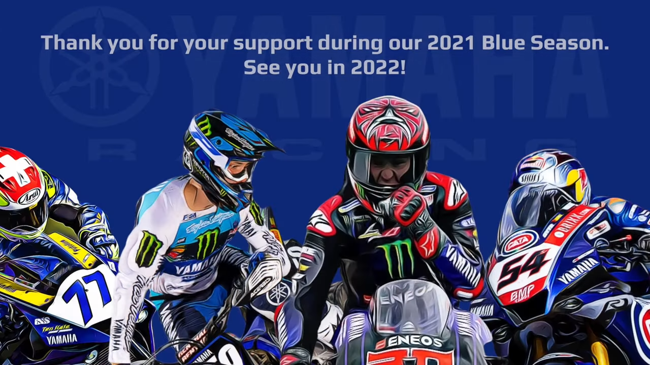 Il blu era il colore del 2021. La Yamaha è stata incoronata campionessa del mondo in MotoGP, FIM MX2 World Championship, FIM Superbike World Championship e FIM Supersport World Championship, segnando uno degli anni di maggior successo mai registrati per il produttore giapponese.